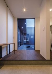 外部からの視線を遮るべく、中庭部分の壁の高さを調整しカーテンの要らない生活を実現しました。